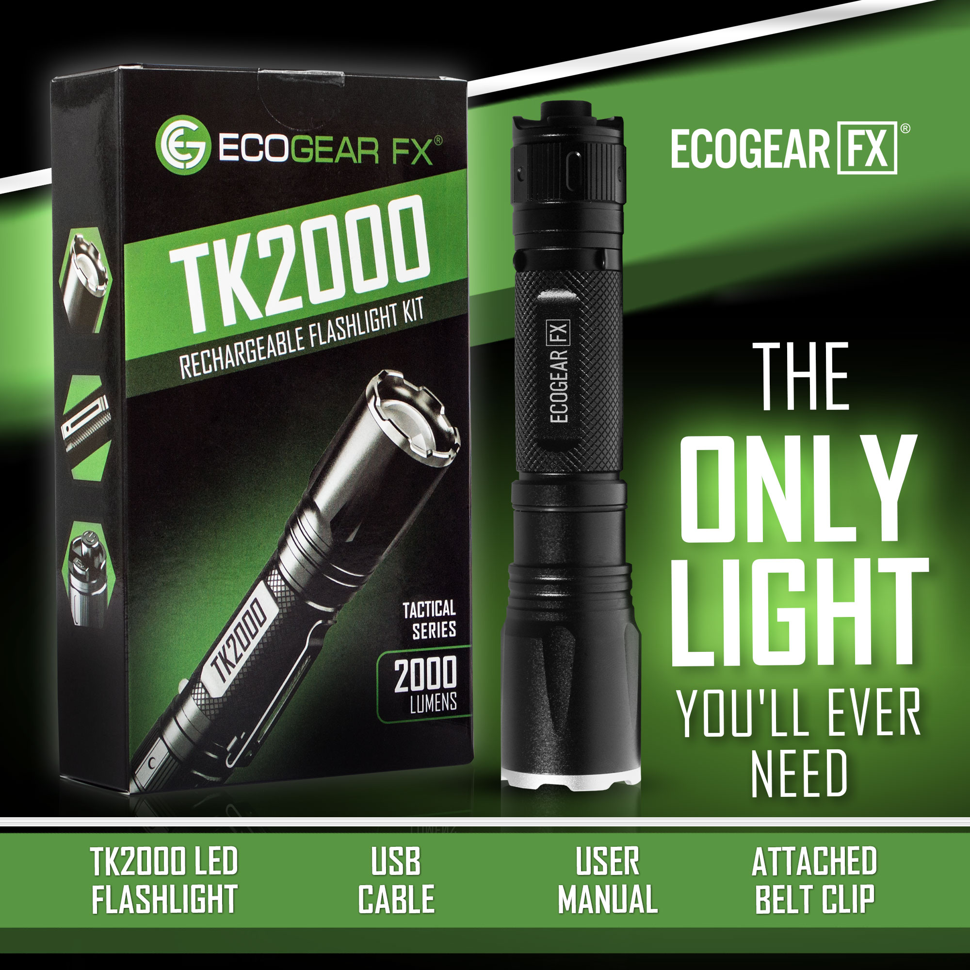 • RUGGED DESIGN: Durability that other flashlights do not offer, the TK2000 is constructed of durable aircraft-grade aluminum with a hardened anodized finish. Offering a professional grade construction that is lightweight, durable and withstands the harsh outdoor elements such as rain, snow, dust and dirt. Ideal for your EDC gear, hurricane preparedness emergencies and outdoor survival kits.